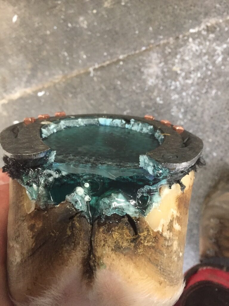 This pour-in hoof packing product allows many different application opportunities. First purpose is when the hoof needs some support, for sport horses for instance.