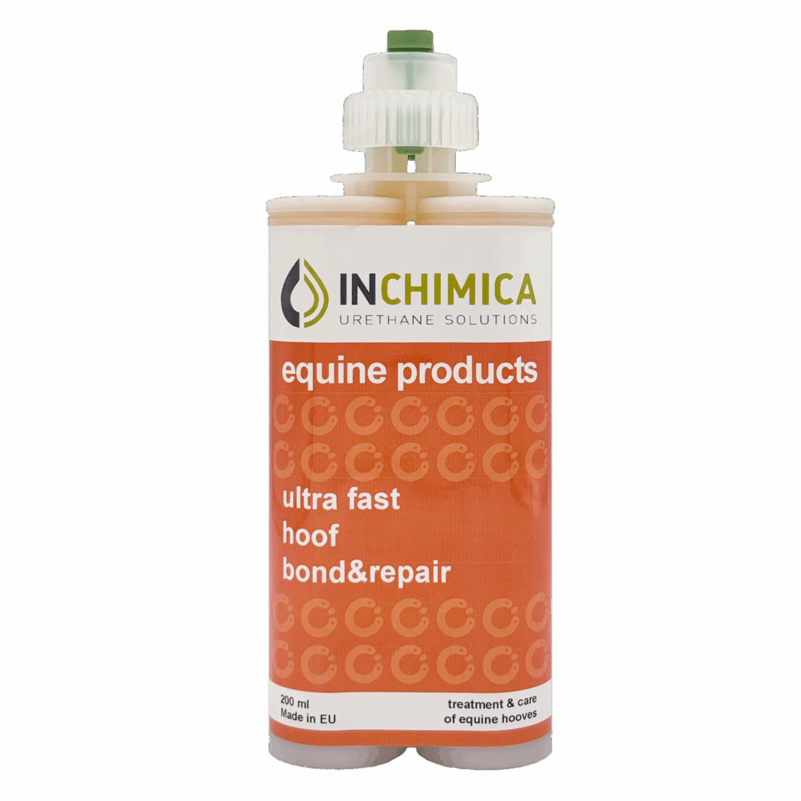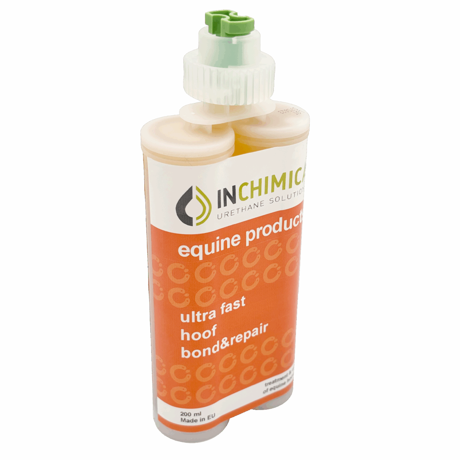 This product can be applied for repairing the hoof wall (partially or totally) as well as for foal extensions and corrections. It can be used for bonding any type of metal or plastic shoe. Another application is the creation of a temporary shoe directly on the hoof of racing horses.