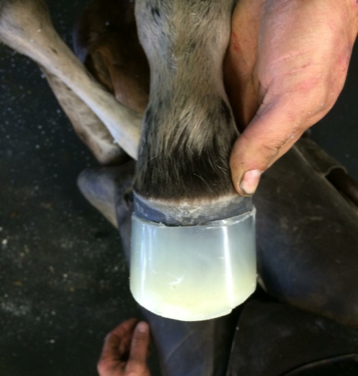 This pour-in hoof packing product allows many different application opportunities. First purpose is when the hoof needs some support, for sport horses for instance.